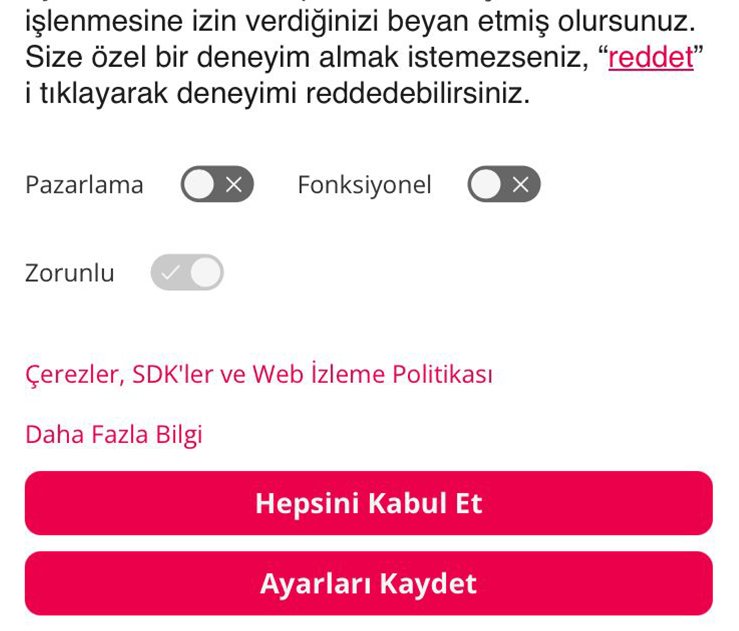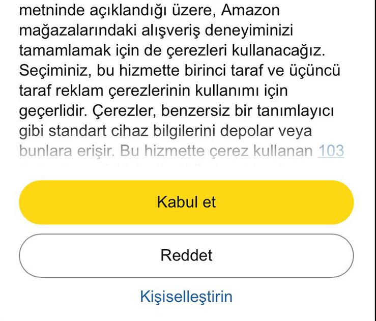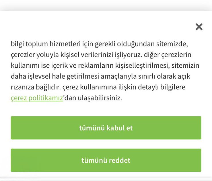 Eşit Olmayan Tasarımlar: Kabul seçeneğinin görsel olarak daha baskın olduğu, reddet seçeneğinin daha az görünür kılındığı ya da çok adımlı bir yapı ile erişimin zorlaştırıldığı, kullanıcı yönlendirmesi içeren arayüzler.